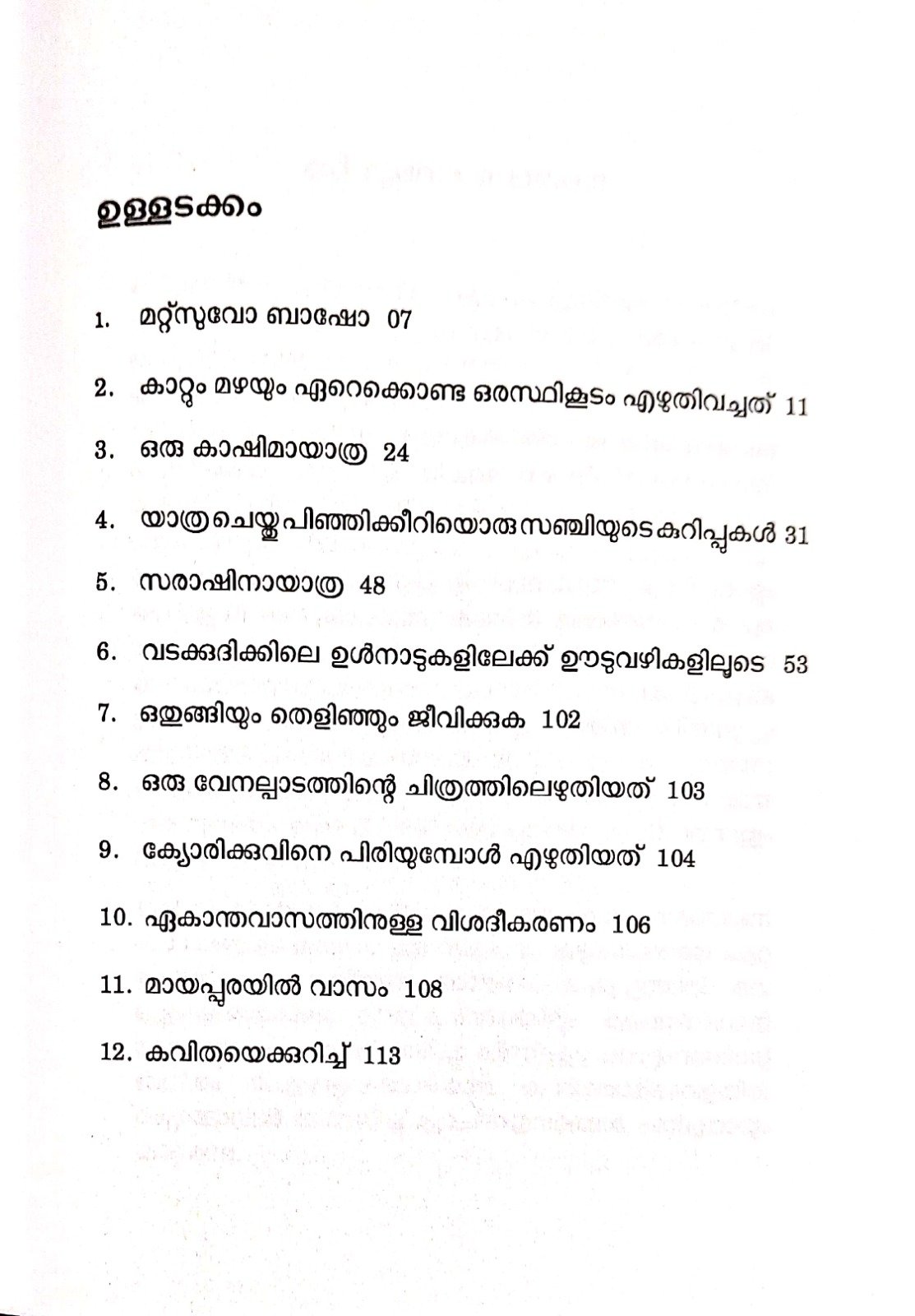 മറ്റ്സുവോ ബാഷോയുടെ യാത്രക്കുറിപ്പുകളുടേയും മറ്റു ഗദ്യകൃതികളുടേയും സമാഹാരമാണ് “ഒരു കവിയുടെ യാത്രകൾ.”